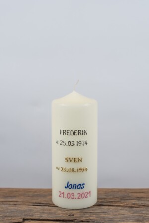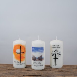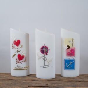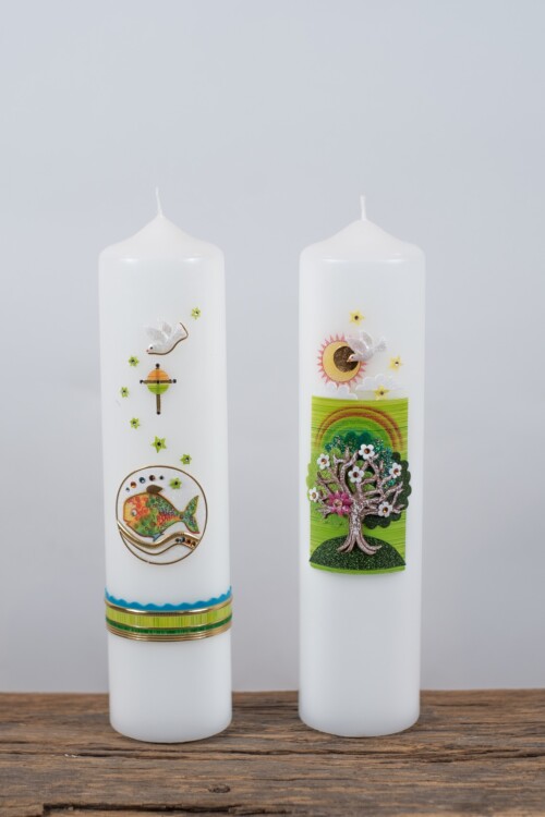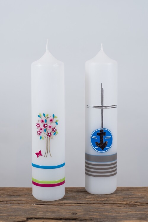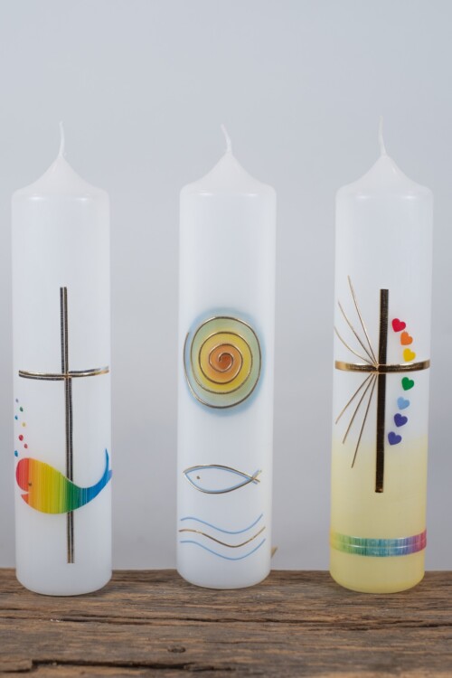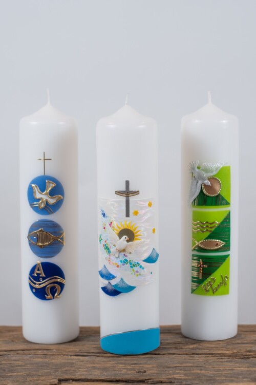 Wir haben für jeden Anlass und jedes kirchliche Fest handgearbeitete Kerzen mit verschiedenen Motiven im Angebot: Taufkerzen, Kommunionkerzen, Kerzen zur Firmung, Konfirmationskerzen, Geburtstagskerzen, Hochzeitskerzen und Trauerkerzen. Individuelle Motive und Aufschriften fertigen wir gerne nach Ihren Wünschen an.