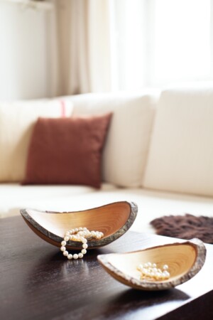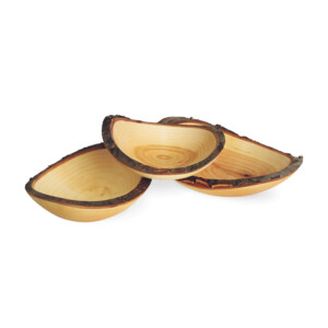 Holzschalen mit und ohne Rinde in verschiedenen Größen und Formen sind ein schlichter Schmuck für Tische und Anrichten.