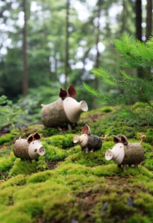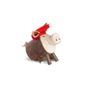 Wir haben viele verschiedene Tiere im Sortiment: Unsere Schweine sind Glücksbringer, machen sich aber zusammen mit Elch, Kuh, Eule und Eichhörnchen ebenso gut als Weihnachtsdekoration.